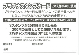 - 60歳以上の組合員さん対象、1,000円以上お買い上げでスタンプ1個進呈。