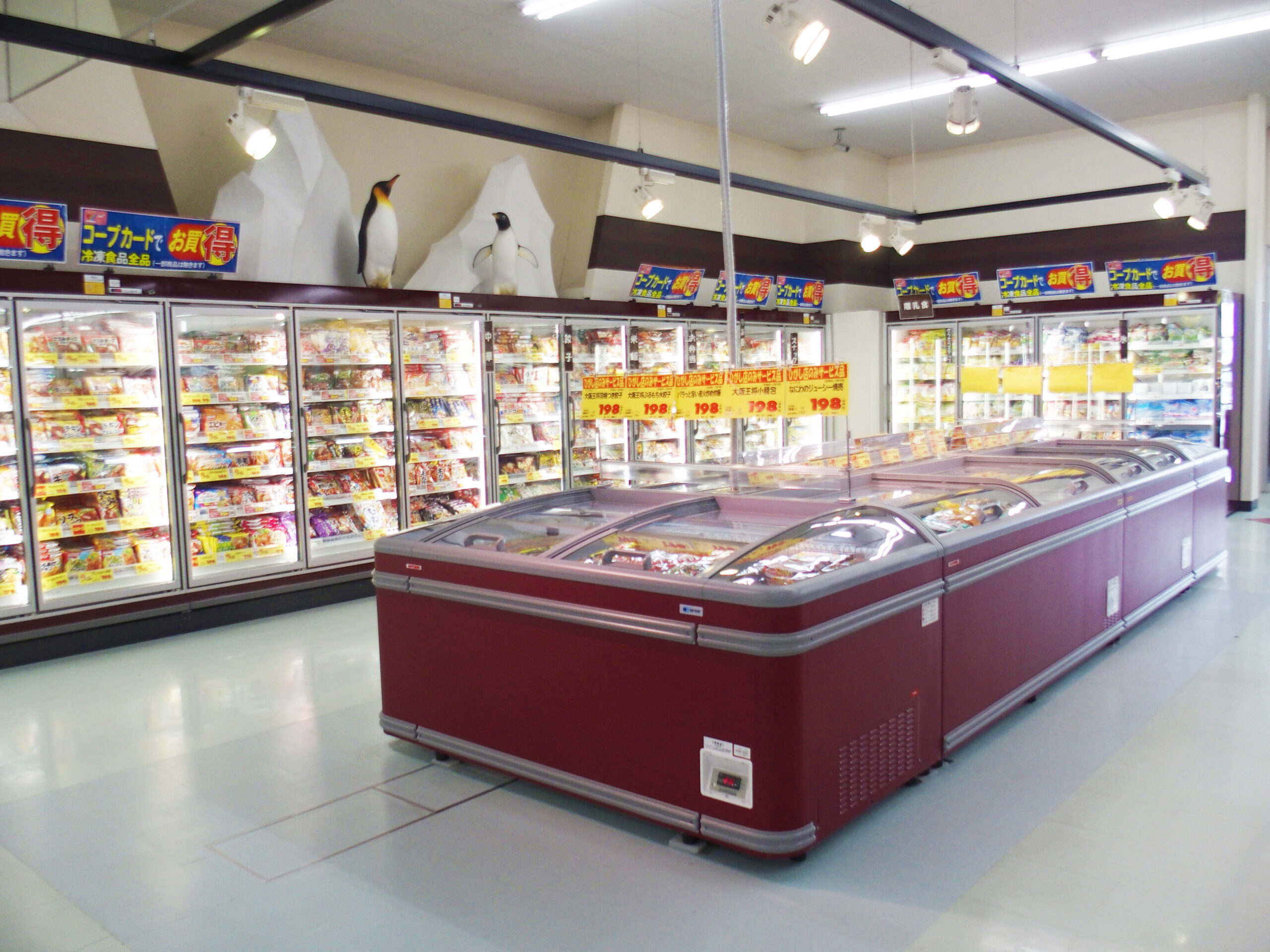 冷凍食品などには、扉付き冷凍ショーケース(リーチインショーケース)を使用しています。