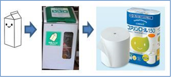 回収した紙パックは、古紙問屋を通じてトイレットペーパーなどにリサイクルされます。
