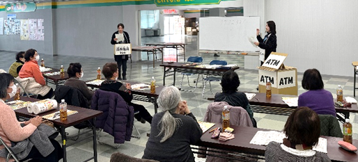 1月27日(火)ひがし店で、こ~ぷ委員学習会を開催し18名が参加しました。喜多方市消費生活センターから講師をお招きし、最近の手口や相談が多い事例、身近な消費者トラブルを寸劇で分かりやすく説明してもらいました。話し方が巧妙になってきており、○○の回線を使ってますか?と自分が○○の会社から委託されているかのような話し方で紛らわしいそうです。不用品の買取りの電話も、不用品には目もくれず指輪やネックレスなど事前に予定しないものを安価で買い取り、キャンセルしようと思っても倉庫が煩雑で見つかりませんなどという手口で、泣き寝入りになったケースもあったそうです。