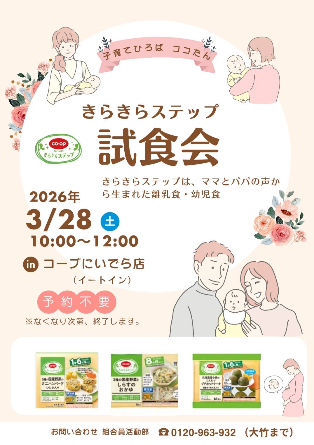 内容:ママとパパの声から生まれた離乳食・幼児食”きらきらステップを試食    します。